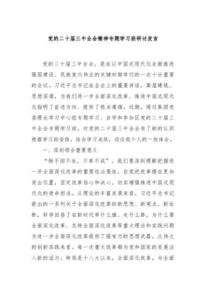/ 【七哥公文】2024年:党的二十届三中全会精神专题学习班研讨发言+更多免费公文+VX:QiGeGongWen2024