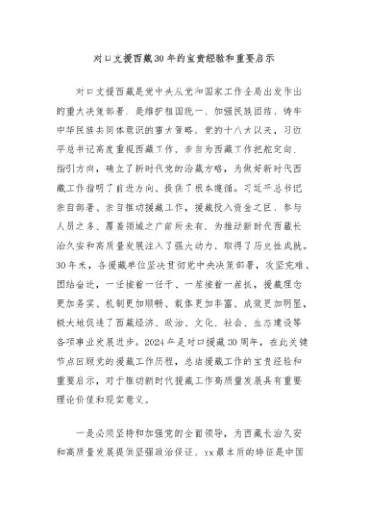 / 【七哥公文】2024年:对口支援西藏30年的宝贵经验和重要启示+更多免费公文+VX:QiGeGongWen2024