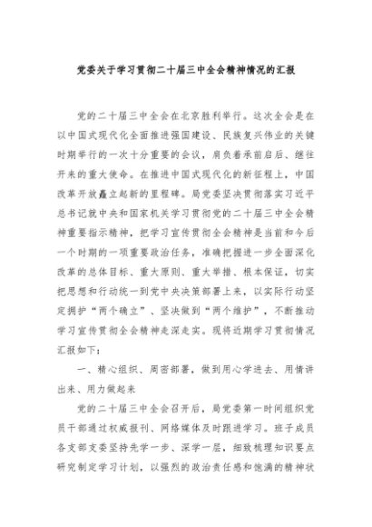 / 【七哥公文】2024年:党委关于学习贯彻二十届三中全会精神情况的汇报+更多免费公文+VX:QiGeGongWen2024