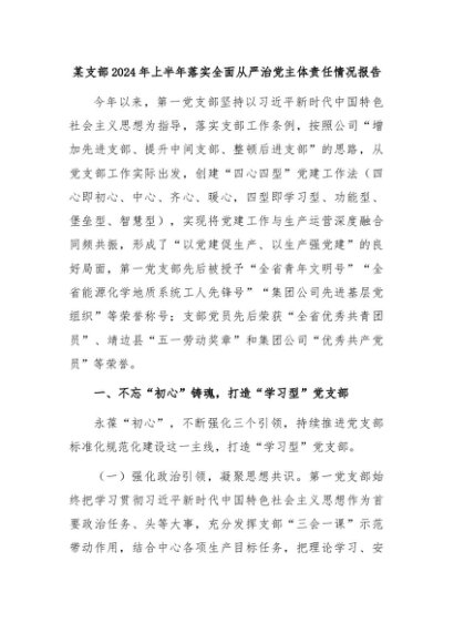 【七哥公文】2024年:某支部2024年上半年落实全面从严治党主体责任情况报告+更多免费公文+VX:QiGeGongWen2024