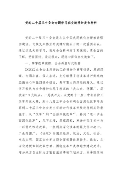 / 【七哥公文】2024年:党的二十届三中全会专题学习班交流研讨发言材料+更多免费公文+VX:QiGeGongWen2024