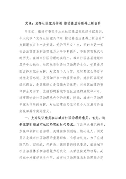 / 【七哥公文】2024年:党课:发挥社区党员作用 推动基层治理再上新台阶+更多免费公文+VX:QiGeGongWen2024