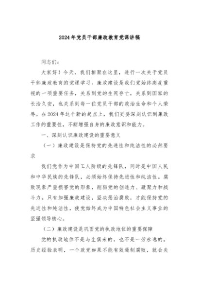 / 【七哥公文】2024年:2024年党员干部廉政教育党课讲稿+更多免费公文+VX:QiGeGongWen2024