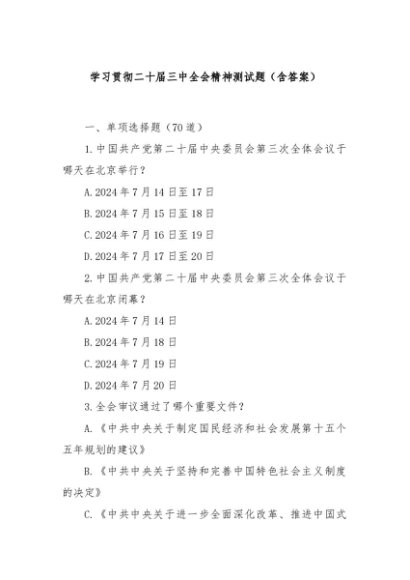 / 【七哥公文】2024年:学习贯彻二十届三中全会精神测试题(含答案)+更多免费公文+VX:QiGeGongWen2024