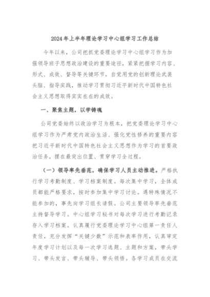 / 【七哥公文】2024年:2024年上半年理论学习中心组学习工作总结+更多免费公文+VX:QiGeGongWen2024