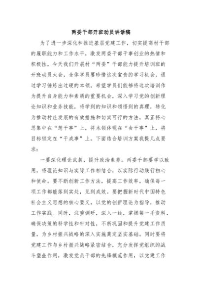 / 【七哥公文】2024年:两委干部开班动员讲话稿+更多免费公文+VX:QiGeGongWen2024