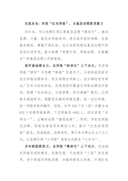 / 【七哥公文】2024年:交流发言:织密“红色网格”,为基层治理提质蓄力+更多免费公文+VX:QiGeGongWen2024