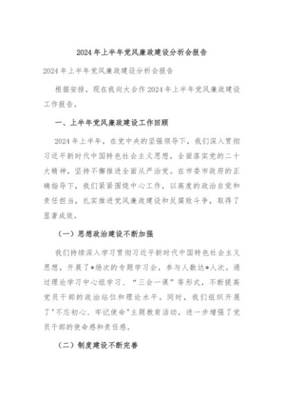 / 【七哥公文】2024年:2024年上半年党风廉政建设分析会报告+更多免费公文+VX:QiGeGongWen2024