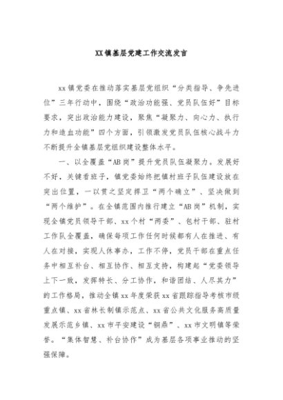 / 【七哥公文】2024年:XX镇基层党建工作交流发言+更多免费公文+VX:QiGeGongWen2024