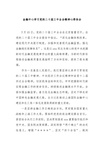 / 【七哥公文】2024年:金融中心学习党的二十届三中全会精神心得体会+更多免费公文+VX:QiGeGongWen2024