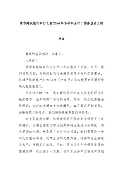 【七哥公文】2024年:某市建设银行副行长在2024年下半年全行工作务虚会上的发言+更多免费公文+VX:QiGeGongWen2024