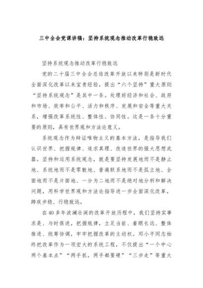 / 【七哥公文】2024年:三中全会党课讲稿:坚持系统观念推动改革行稳致远+更多免费公文+VX:QiGeGongWen2024