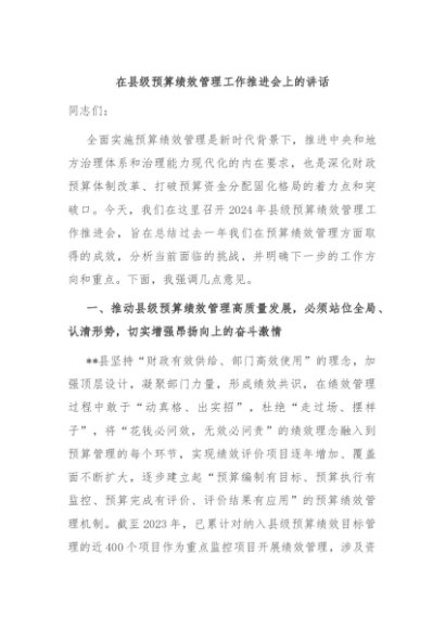 / 【七哥公文】2024年:在县级预算绩效管理工作推进会上的讲话+更多免费公文+VX:QiGeGongWen2024