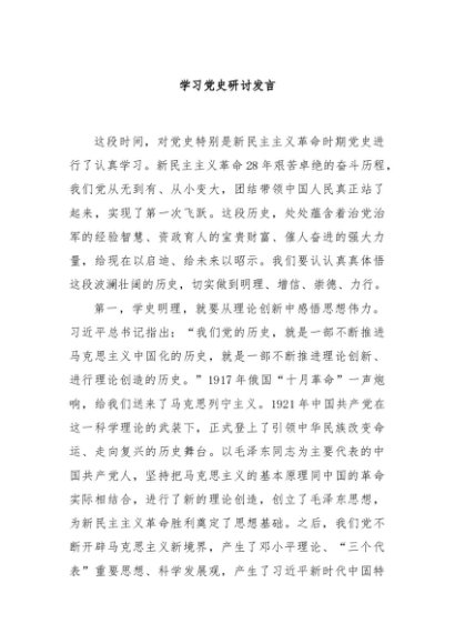 / 【七哥公文】2024年:学习党史研讨发言+更多免费公文+VX:QiGeGongWen2024
