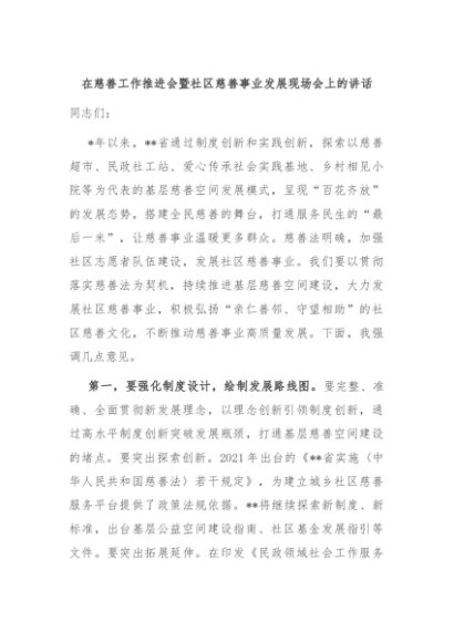 / 【七哥公文】2024年:在慈善工作推进会暨社区慈善事业发展现场会上的讲话+更多免费公文+VX:QiGeGongWen2024