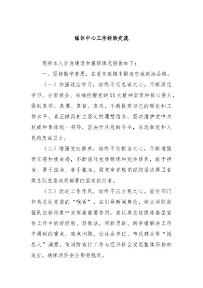 【七哥公文】2024年:媒体中心工作经验交流+更多免费公文+VX:QiGeGongWen2024