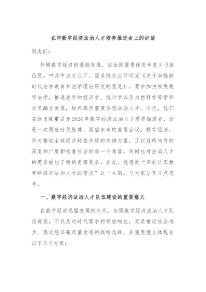 / 【七哥公文】2024年:在市数字经济法治人才培养推进会上的讲话+更多免费公文+VX:QiGeGongWen2024