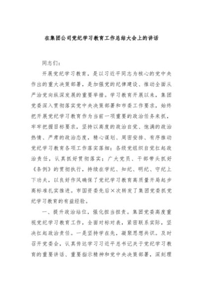 / 【七哥公文】2024年:在集团公司党纪学习教育工作总结大会上的讲话+更多免费公文+VX:QiGeGongWen2024