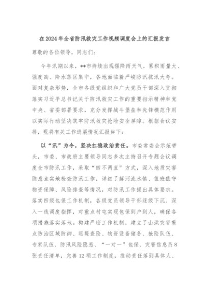 【七哥公文】2024年:在2024年全省防汛救灾工作视频调度会上的汇报发言+更多免费公文+VX:QiGeGongWen2024