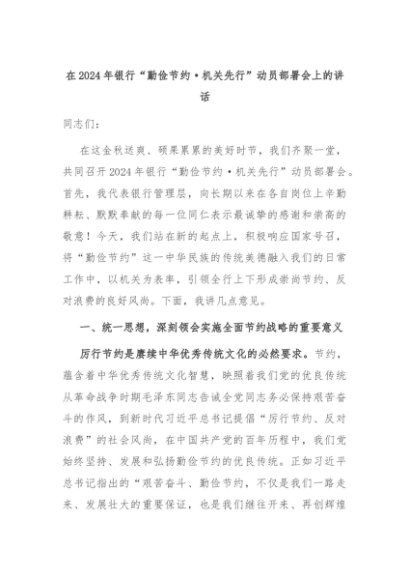 【七哥公文】2024年:在2024年银行“勤俭节约·机关先行”动员部署会上的讲话+更多免费公文+VX:QiGeGongWen2024