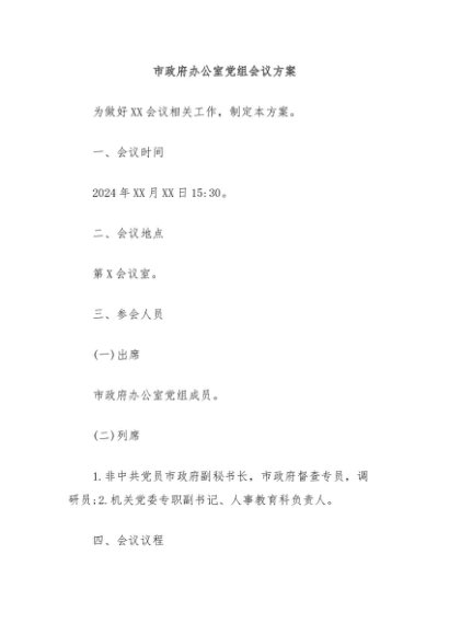 【七哥公文】2024年:市政府办公室党组会议方案+更多免费公文+VX:QiGeGongWen2024