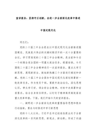 【七哥公文】2024年:宣讲报告:坚持守正创新,在进一步全面深化改革中推进中国式现代化+更多免费公文+VX:QiGeGongWen2024