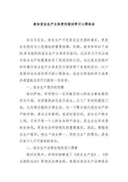 / 【七哥公文】2024年:参加安全生产主体责任培训学习心得体会+更多免费公文+VX:QiGeGongWen2024