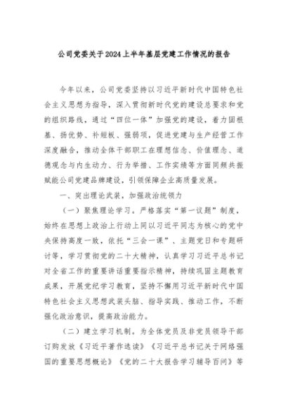 / 【七哥公文】2024年:公司党委关于2024上半年基层党建工作情况的报告+更多免费公文+VX:QiGeGongWen2024