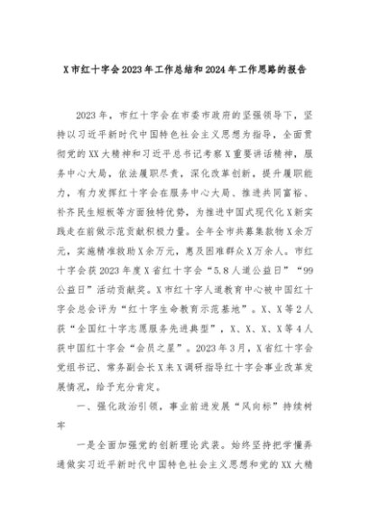 【七哥公文】2024年:X市红十字会2023年工作总结和2024年工作思路的报告+更多免费公文+VX:QiGeGongWen2024