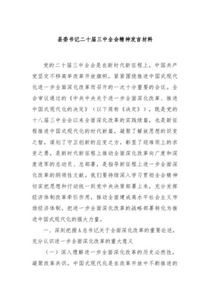 / 【七哥公文】2024年:县委书记二十届三中全会精神发言材料+更多免费公文+VX:QiGeGongWen2024