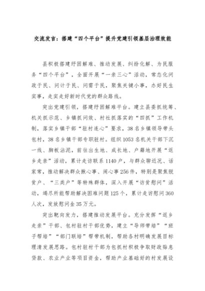 【七哥公文】2024年:交流发言:搭建“四个平台”提升党建引领基层治理效能+更多免费公文+VX:QiGeGongWen2024