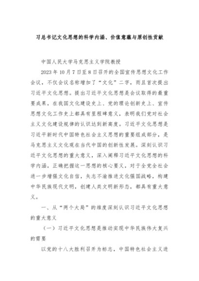 【七哥公文】2024年:习总书记文化思想的科学内涵、价值意蕴与原创性贡献+更多免费公文+VX:QiGeGongWen2024