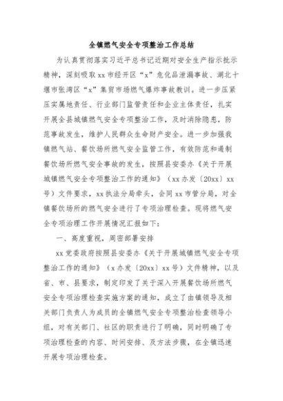 / 【七哥公文】2024年:全镇燃气安全专项整治工作总结+更多免费公文+VX:QiGeGongWen2024