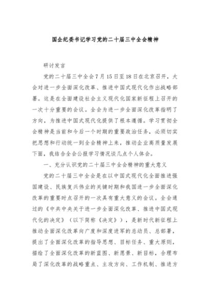 / 【七哥公文】2024年:国企纪委书记学习党的二十届三中全会精神+更多免费公文+VX:QiGeGongWen2024