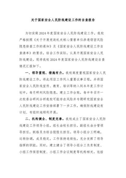 / 【七哥公文】2024年:关于国家安全人民防线建设工作的自查报告+更多免费公文+VX:QiGeGongWen2024