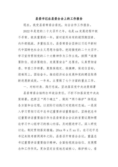 【七哥公文】2024年:县委书记在县委全会上的工作报告+更多免费公文+VX:QiGeGongWen2024