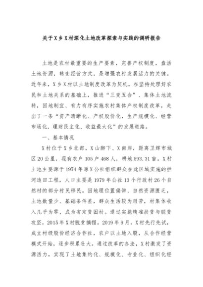/ 【七哥公文】2024年:关于X乡X村深化土地改革探索与实践的调研报告+更多免费公文+VX:QiGeGongWen2024