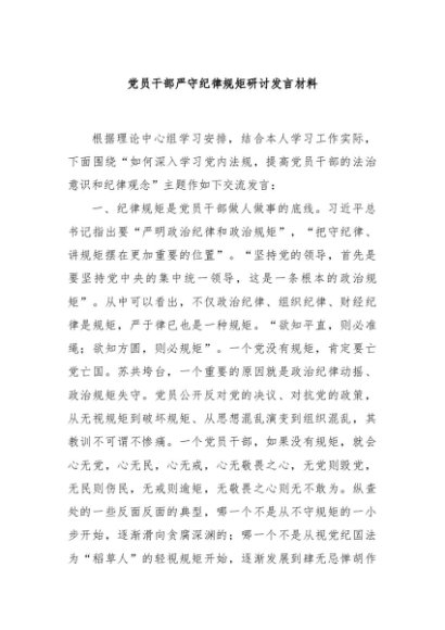 / 【七哥公文】2024年:党员干部严守纪律规矩研讨发言材料+更多免费公文+VX:QiGeGongWen2024