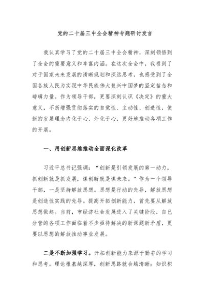 / 【七哥公文】2024年:党的二十届三中全会精神专题研讨发言+更多免费公文+VX:QiGeGongWen2024