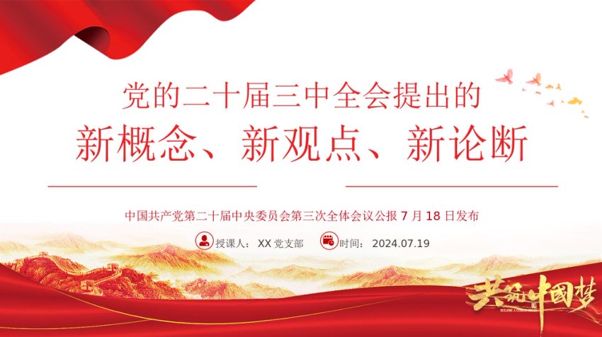 【七哥公文】2024年:2024二十届三中全会提出的新概念新观点新论断PPT党课课件+更多免费公文+VX:QiGeGongWen2024