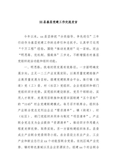/ 【七哥公文】2024年:XX县基层党建工作交流发言+更多免费公文+VX:QiGeGongWen2024