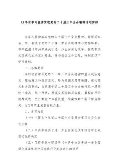【七哥公文】2024年:XX单位学习宣传贯彻党的二十届三中全会精神计划安排+更多免费公文+VX:QiGeGongWen2024