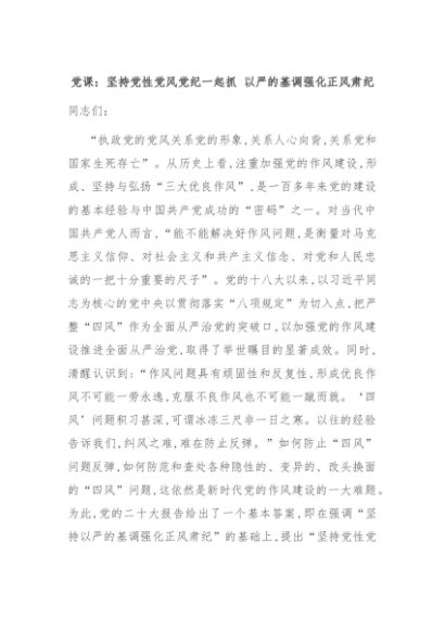 【七哥公文】2024年:党课:坚持党性党风党纪一起抓 以严的基调强化正风肃纪+更多免费公文+VX:QiGeGongWen2024