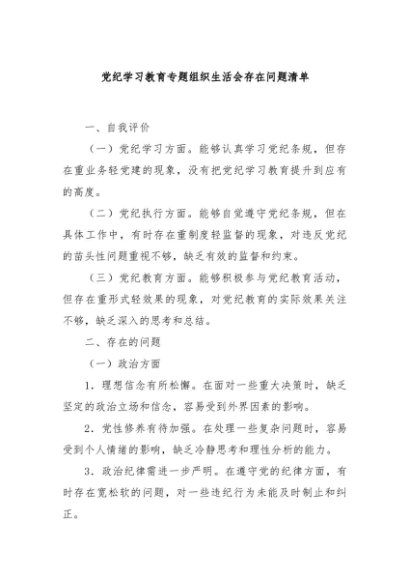 / 【七哥公文】2024年:党纪学习教育专题组织生活会存在问题清单+更多免费公文+VX:QiGeGongWen2024