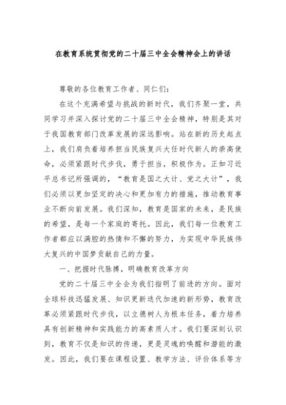 / 【七哥公文】2024年:在教育系统贯彻党的二十届三中全会精神会上的讲话+更多免费公文+VX:QiGeGongWen2024