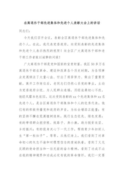 / 【七哥公文】2024年:在离退休干部先进集体和先进个人表彰大会上的讲话+更多免费公文+VX:QiGeGongWen2024