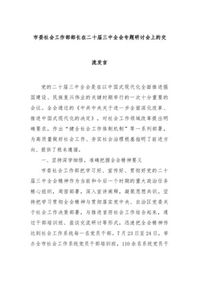 【七哥公文】2024年:市委社会工作部部长在二十届三中全会专题研讨会上的交流发言+更多免费公文+VX:QiGeGongWen2024