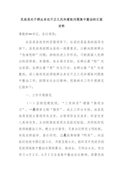 【七哥公文】2024年:民政局关于群众身边不正之风和腐败问题集中整治的汇报材料+更多免费公文+VX:QiGeGongWen2024