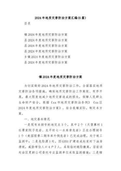 / 【七哥公文】2024年:2024年地质灾害防治方案汇编6篇+更多免费公文+VX:QiGeGongWen2024