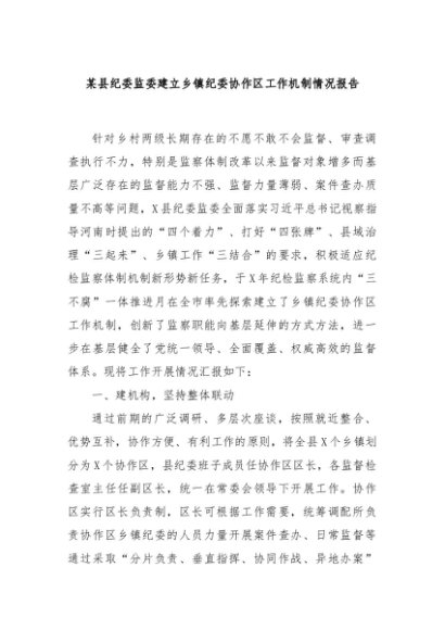 / 【七哥公文】2024年:某县纪委监委建立乡镇纪委协作区工作机制情况报告+更多免费公文+VX:QiGeGongWen2024